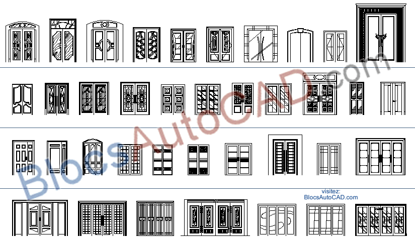 PORTES LARGES  VUE ELEVATION (BLOCS AUTOCAD DWG)