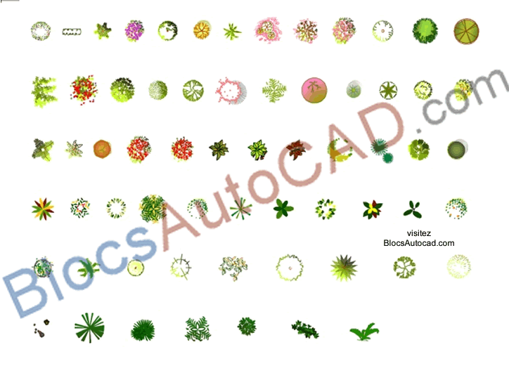 ARBRES EN COULEUR PLAN (BLOCS AUTOCAD DWG)