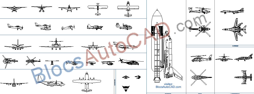 37 haute qualité autocad autres avions (Blocs autocad dwg) plan, profil et face vue